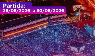 1º dia 26/08 Quarta-feira - Embarque em horários e locais a definir. Ônibus Cama BUS, equipado com internet via satélite (Starlink), carregadores de celular, televisão, sala de jogos, poltrona de acessibilidade, frigobar. Acompanhados por 02 experientes motoristas e 01 guia de Turismo. Noite em trânsito.